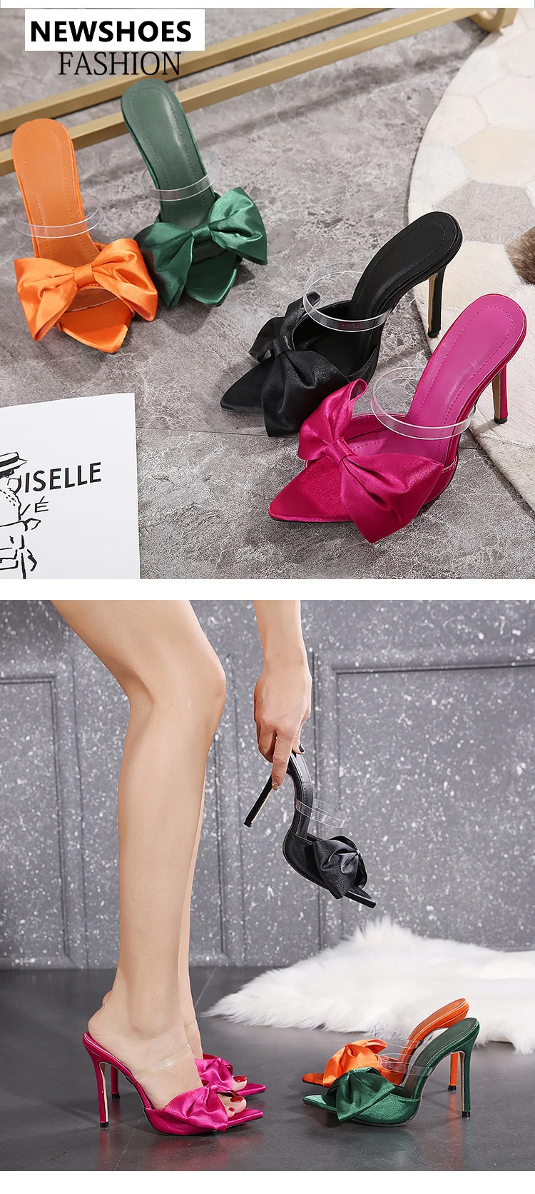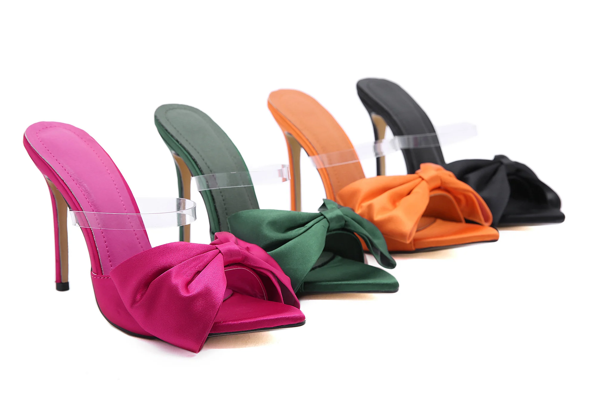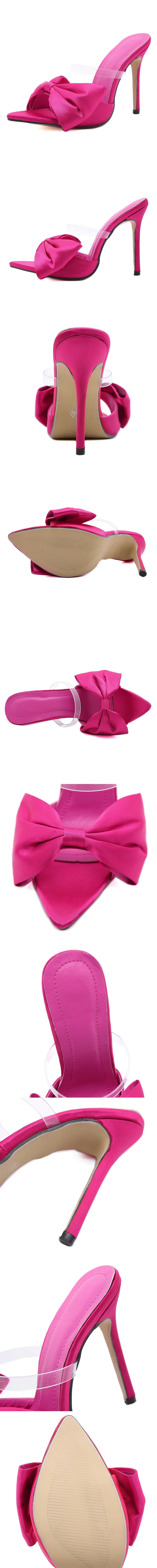 New 2022 Silk Bow Ladies Slippers Muller High Heels Slippers Flip-Flops Pointed Toe Slippers Party Shoes