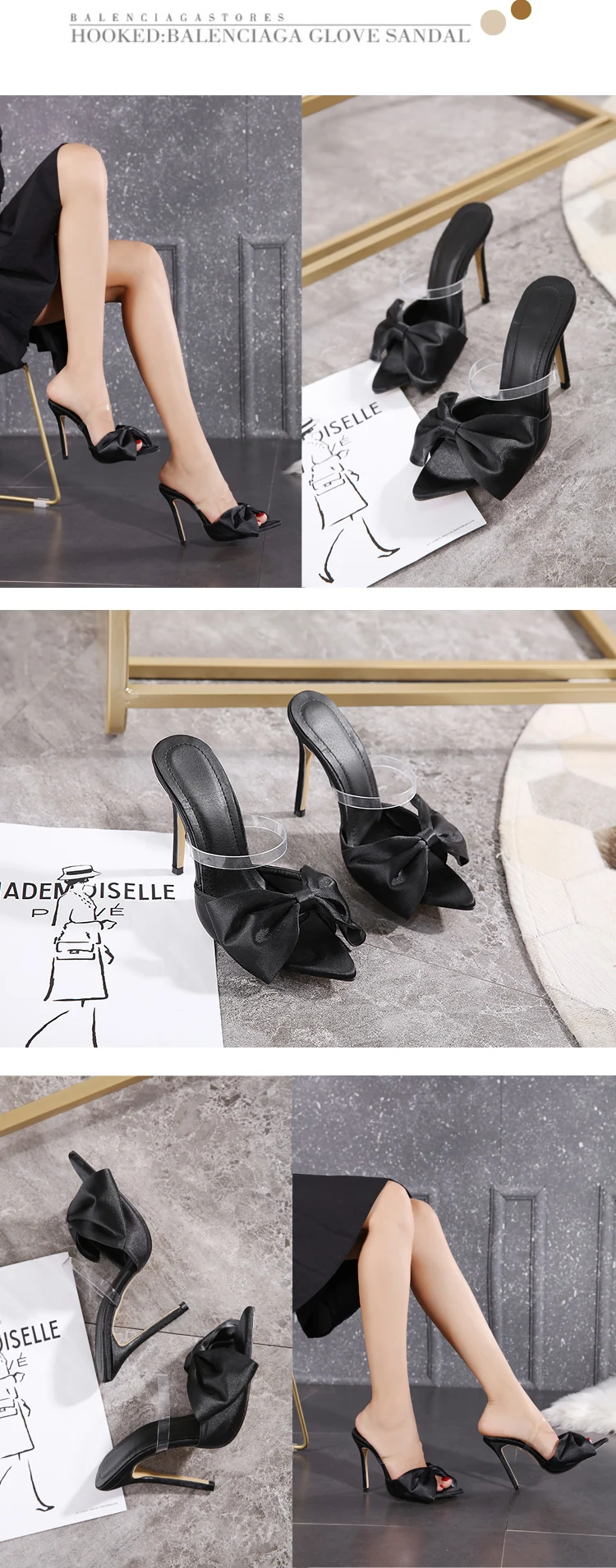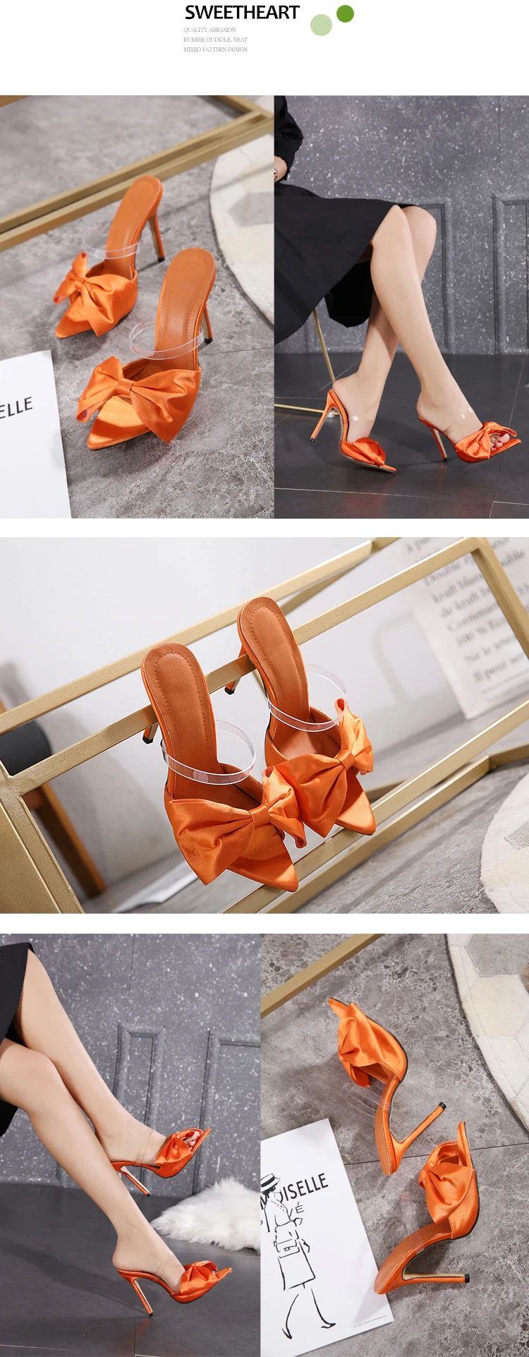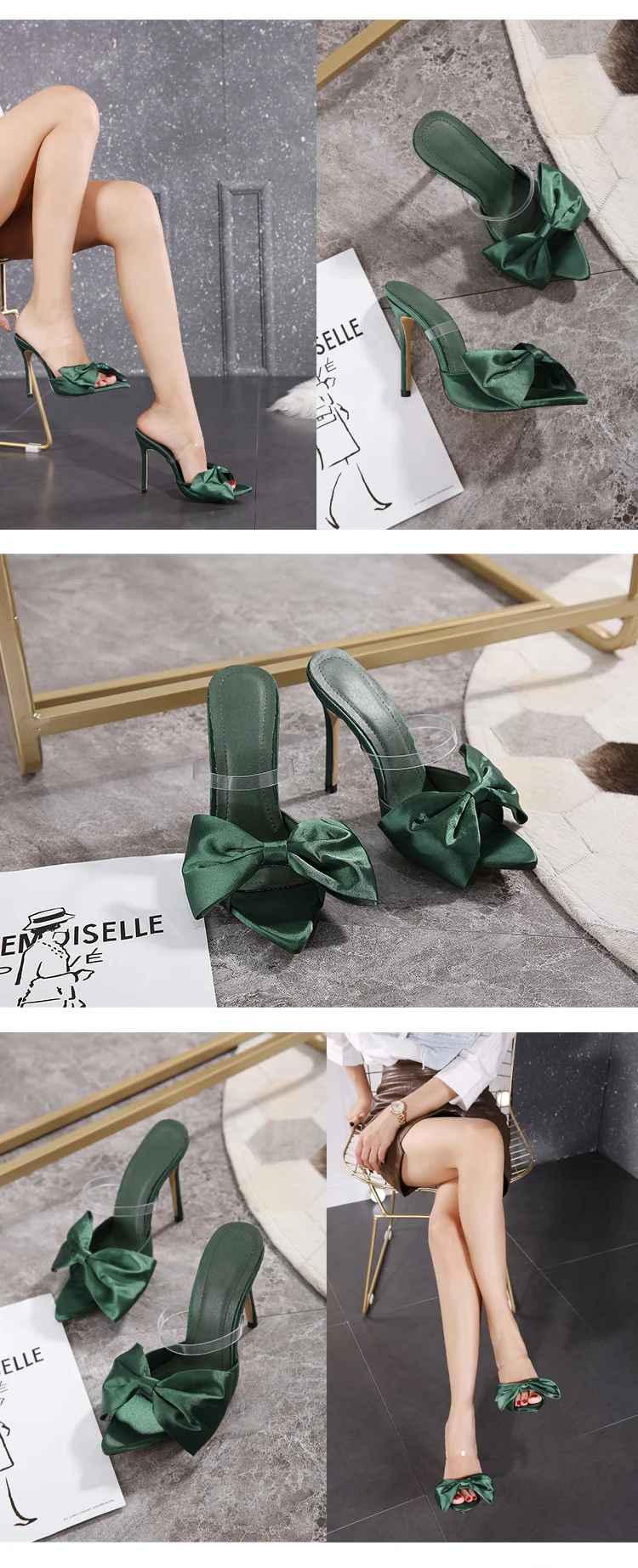 New 2022 Silk Bow Ladies Slippers Muller High Heels Slippers Flip-Flops Pointed Toe Slippers Party Shoes