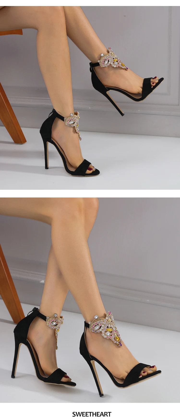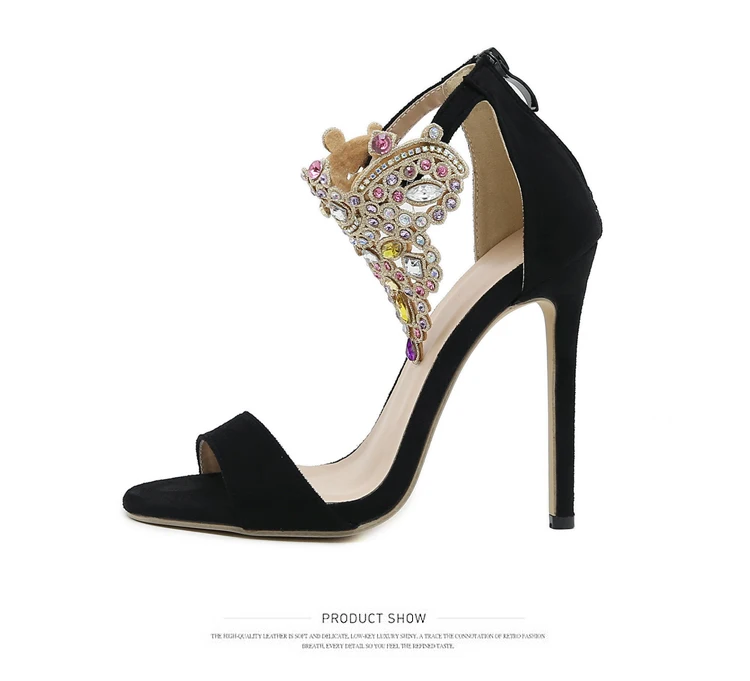 New Brand Fashion Color Rhinestone Women's Sandals High Heels Crystal Ankle Strap Summer Open Toe Stripper Shoes Stiletto