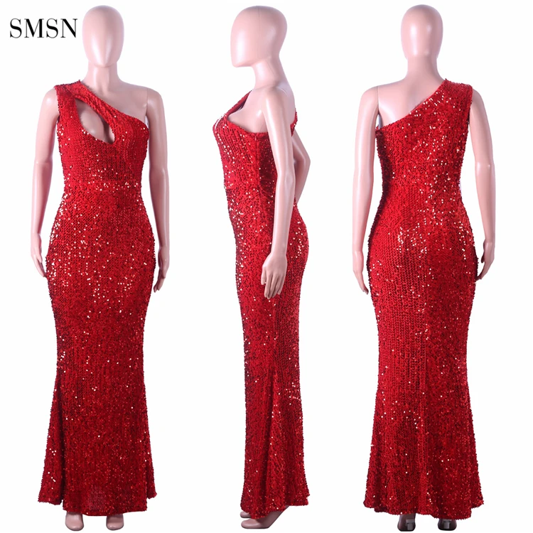 QueenMoen Best Seller Women Dress Sexy Club Party Wear Single Shoulder Hollow Out Sequin Elegant Evening Maxi Dress Ladies Plus Size Casual Women Dress