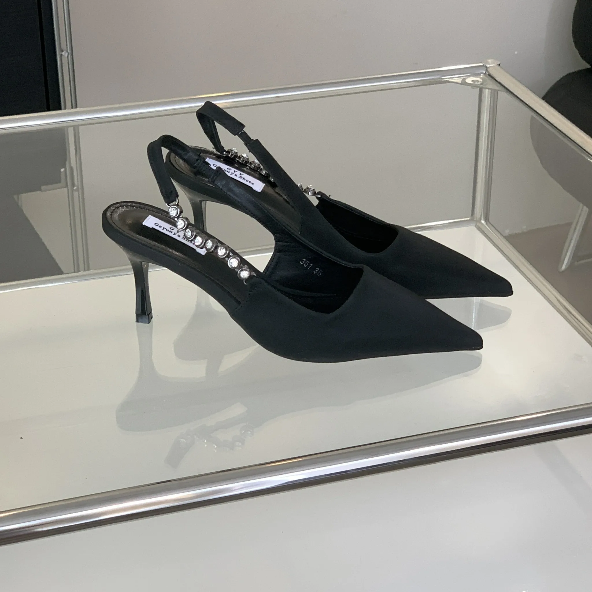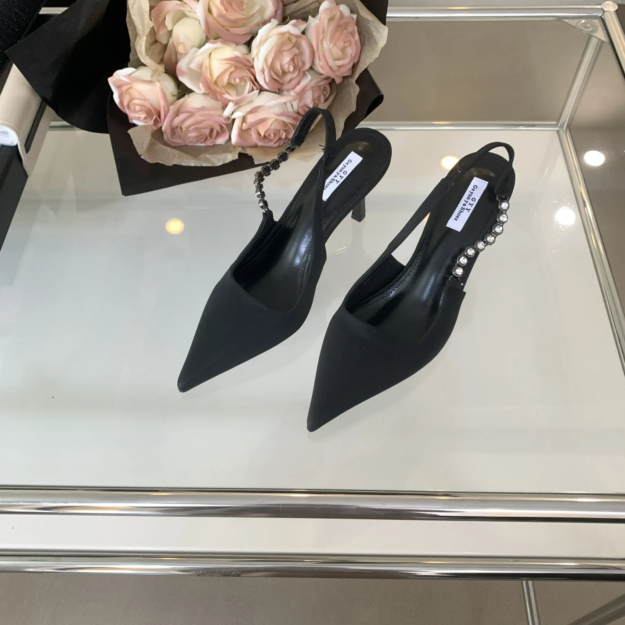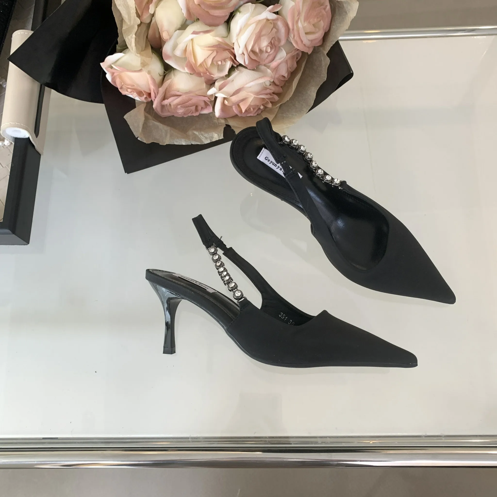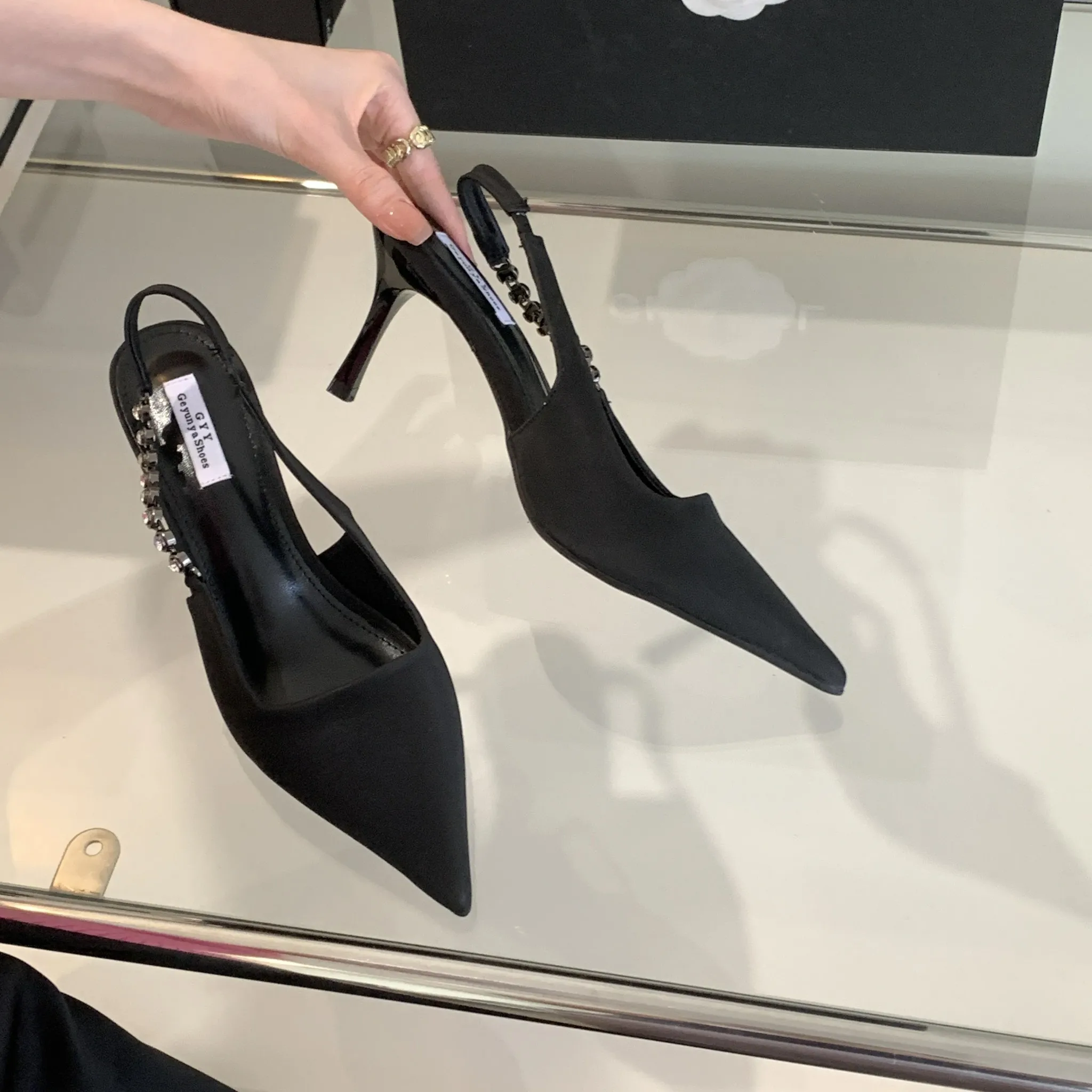 Shiny High Heels Slingback Silver Women Pumps Metallic Crystal Sandals Pointy Toe Stiletto Heeled Shoes Party Dress Shoes Woman